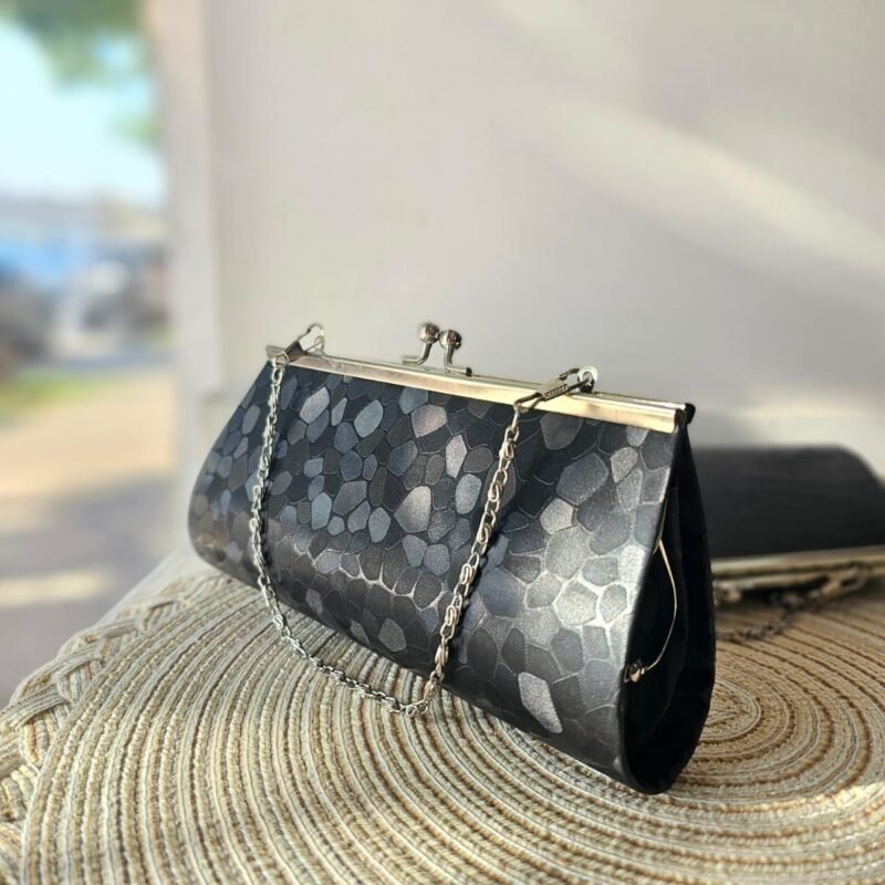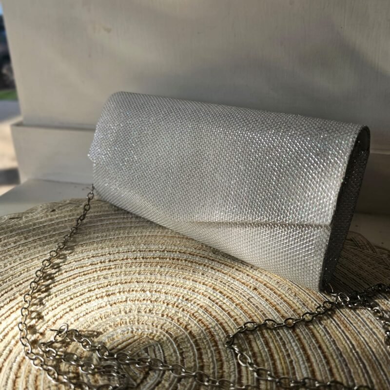 CARTERA PARA FIESTA COLOR GRIS BRILLOSA