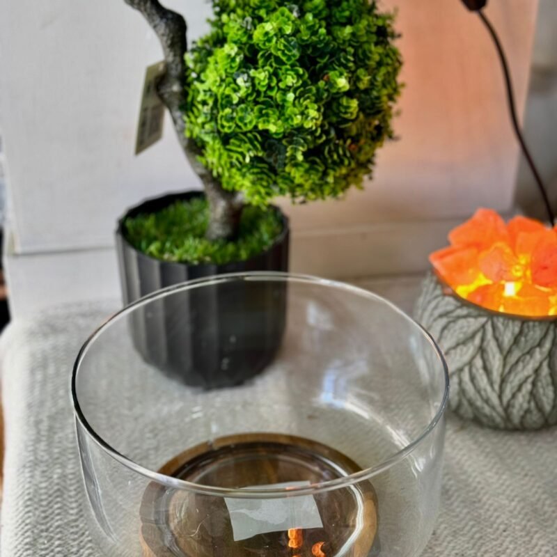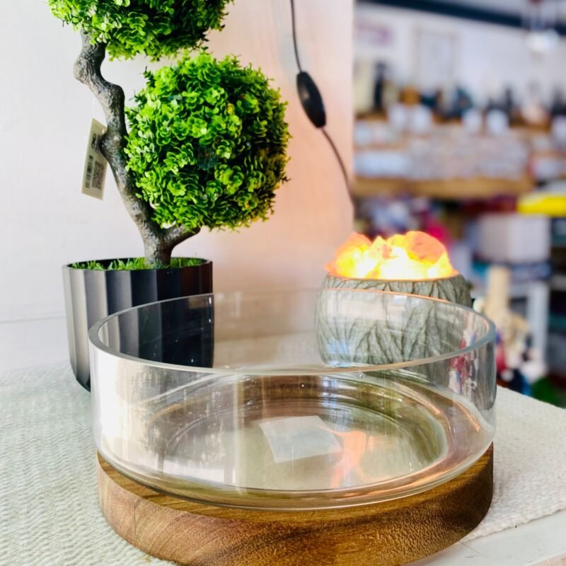 BOWL DE VIDRIO CON BASE DE MADERA 22X10