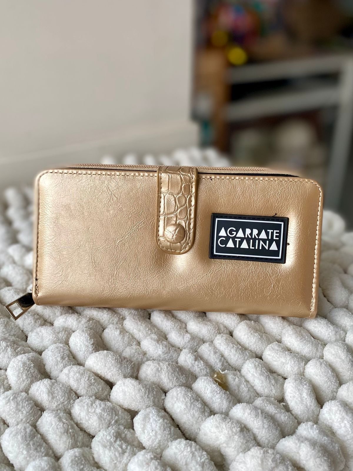 BILLETERA AGARRATE CATALINA DORADA