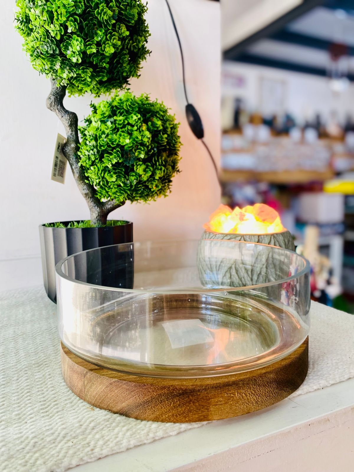 BOLW DE VIDRIO CON BASE DE MADERA 22X10