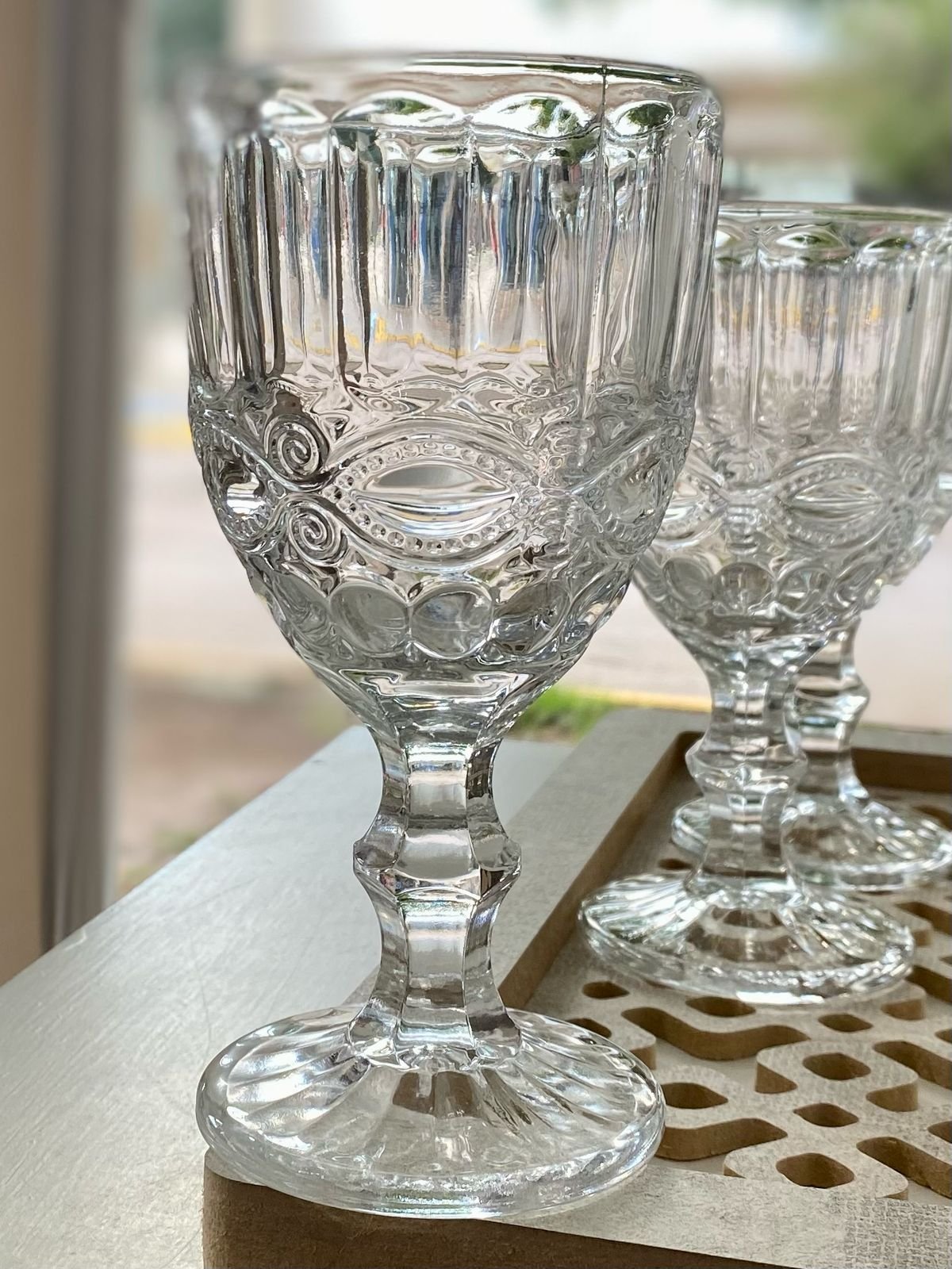 6 COPAS DE 330 ML DE CAPACIDA DE VIDRIO LABRADO CON DISEÑO