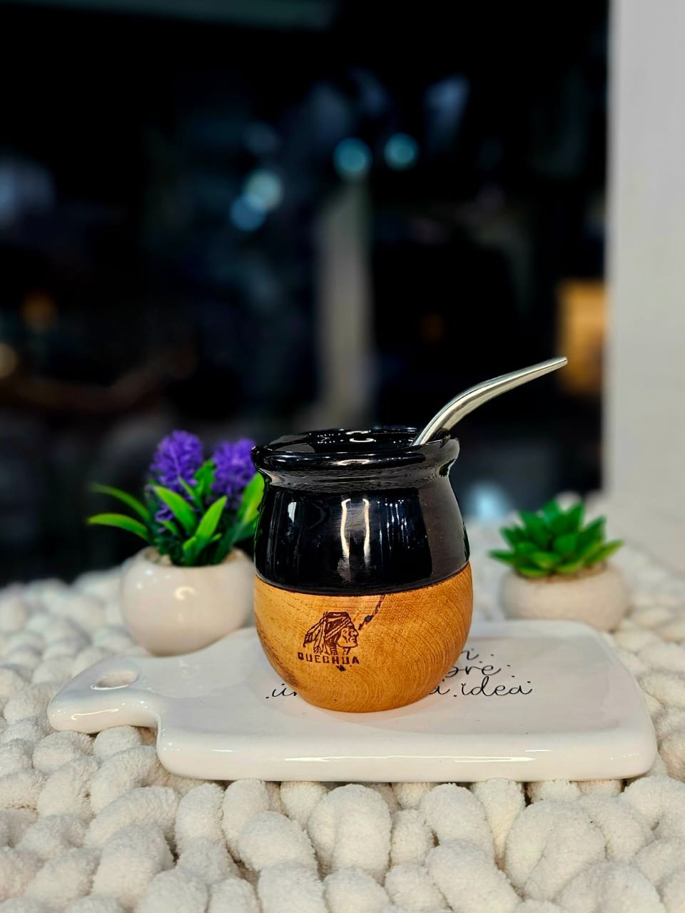 MATE QUECHUA DE CERAMICA Y MADERA COLOR NEGRO