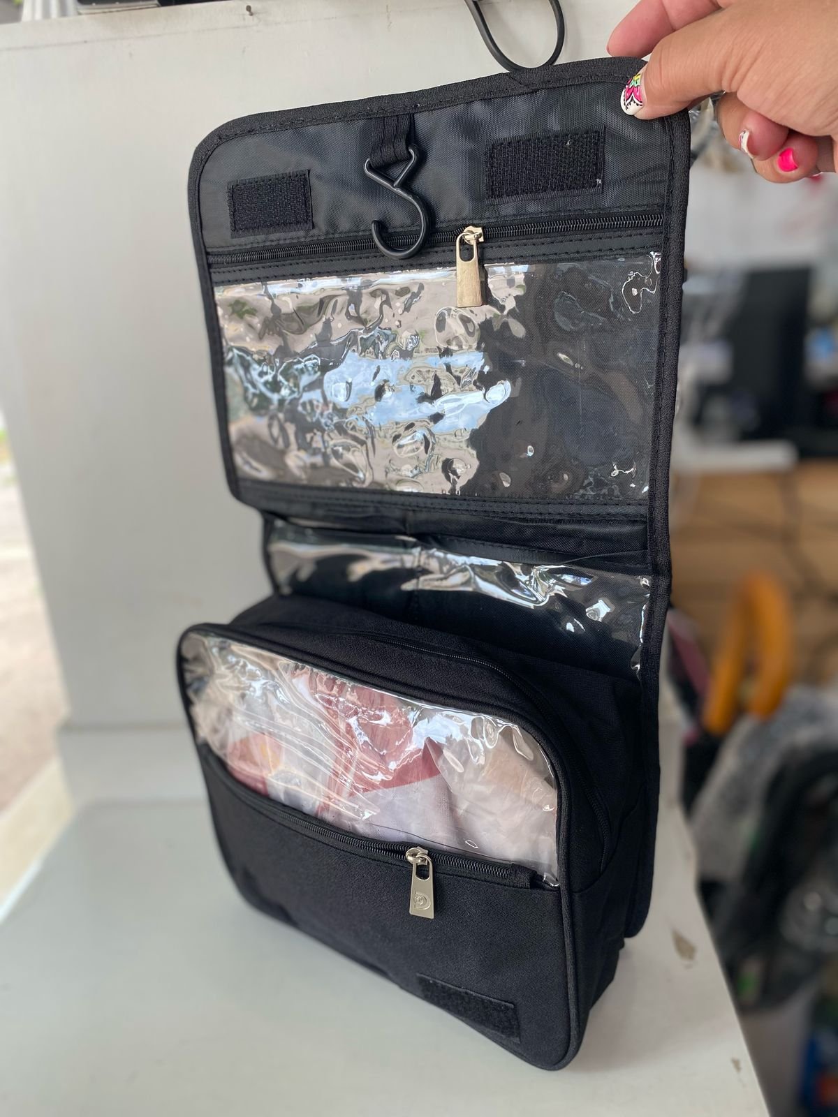 NECESERE NEGRO CON PERCHA MULTIPLES BOLSILLOS MEDIDAS 24 DE ANCHO, 21 DE ALTO
