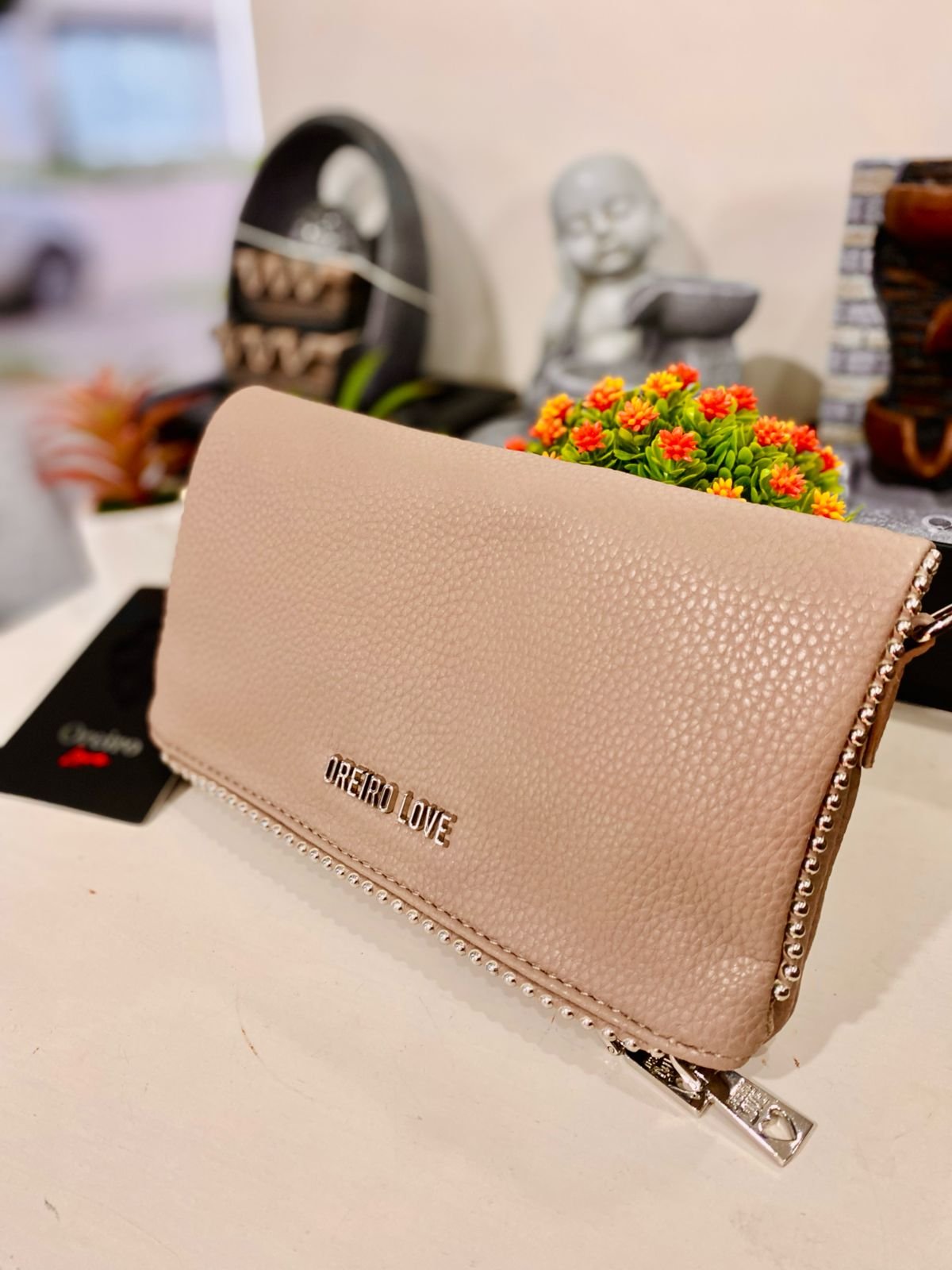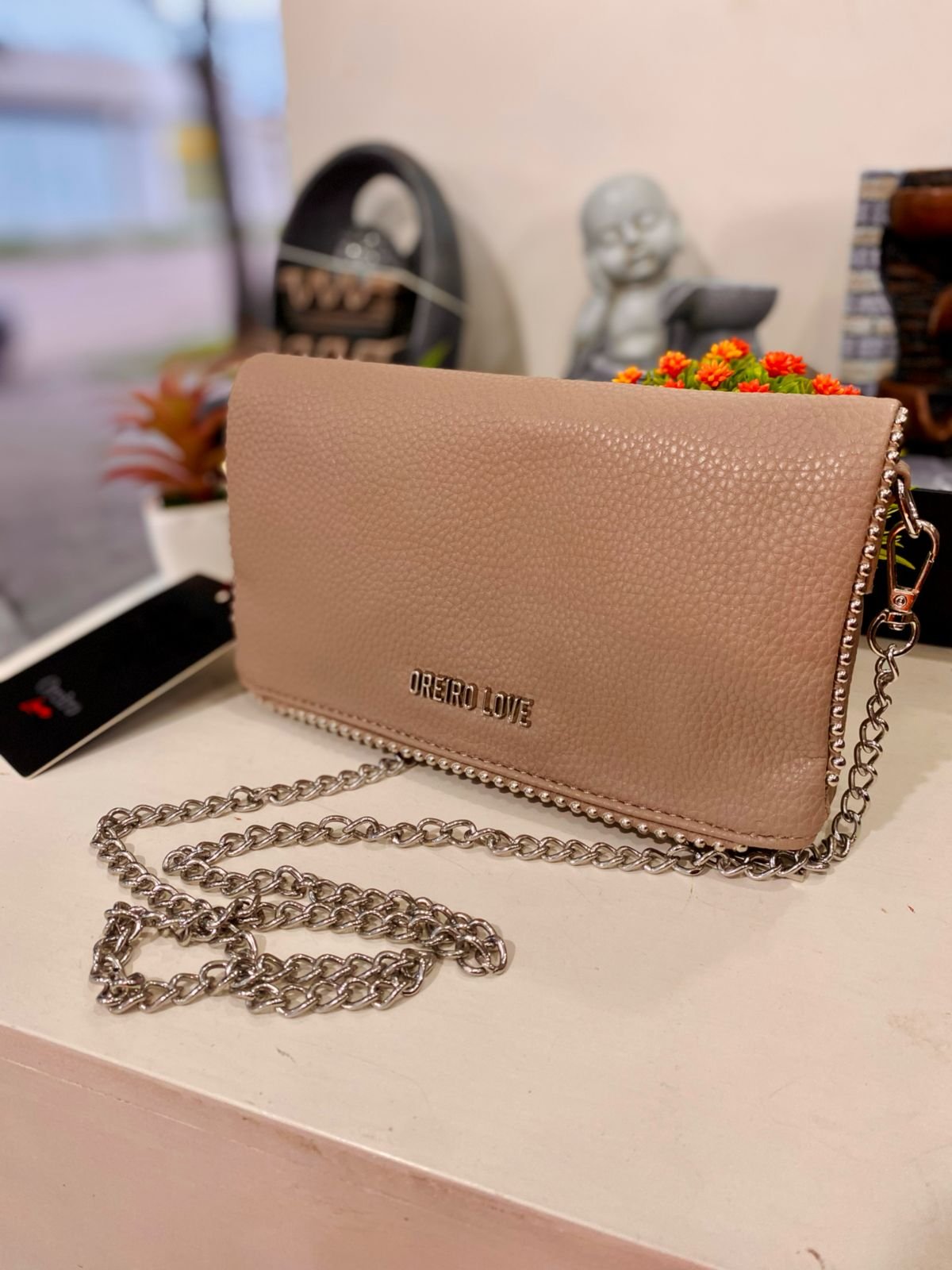 SOBRE BANDOLERA COLOR NUDE CORREA DE CADENA DESMONTABLE DOBLE COMPARTIMENTO 14 X 23 CM