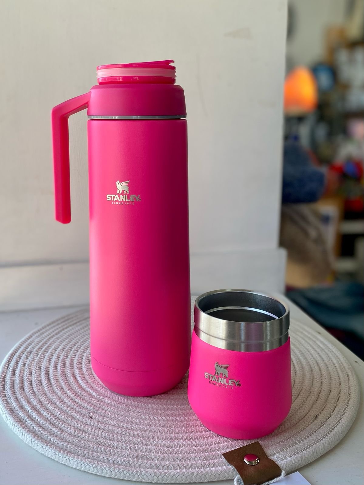 TERMO CON MATE TAPA Y BOMBILLA ROSA FLUOR 1L