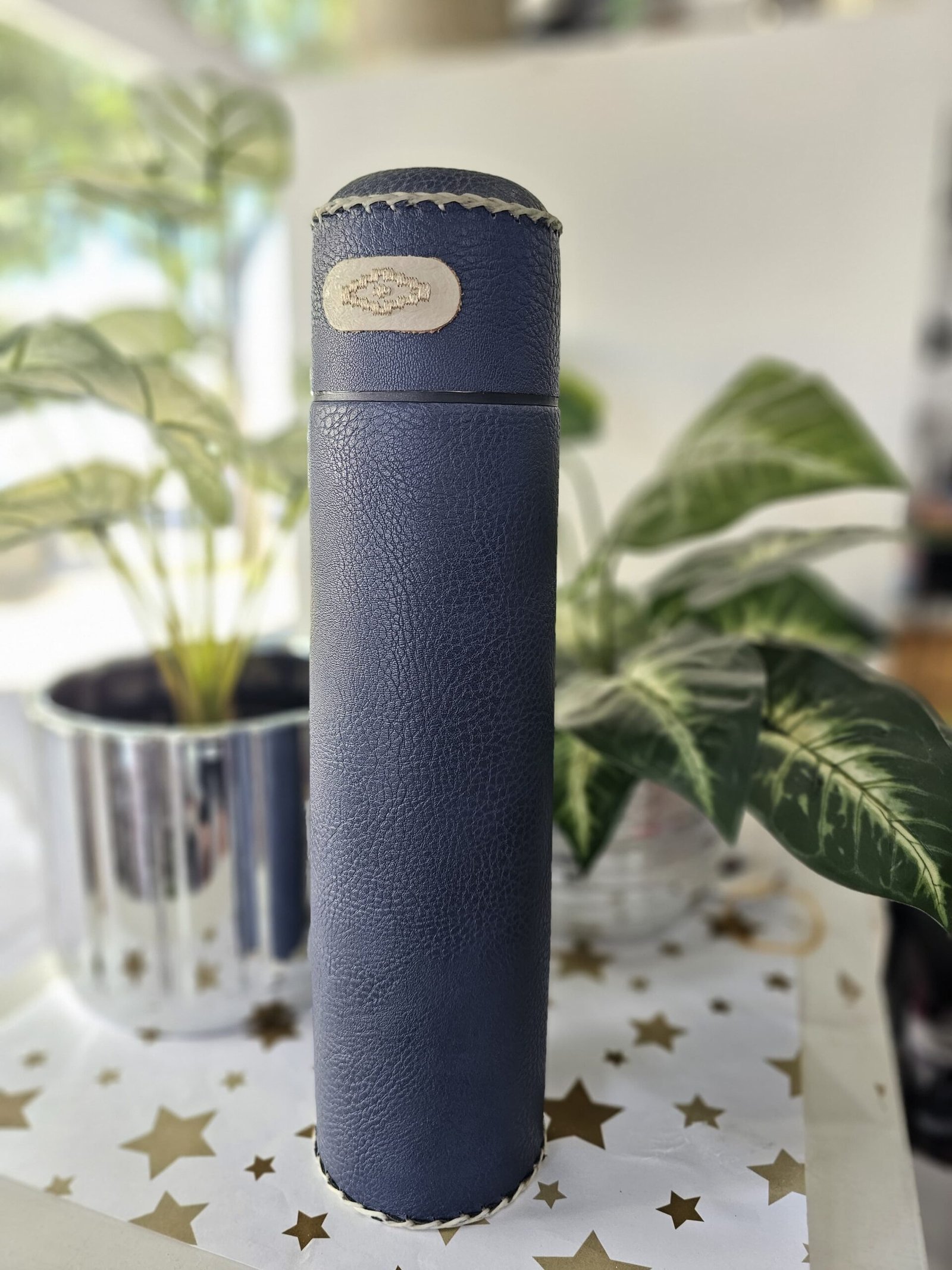 TERMO FORRADO EN ECO CUERO AZUL 1L